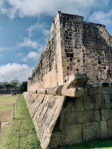 Bei den Mayas hatten solche Sätze eine ganz andere Bedeutung, zumal beim Juego de Pelota, ein Spiel mit einem Kautschukball. Dieser mußte durch einen Ring bugsiert werden, aber nicht mit dem Fuß und nicht mit der Hand, verboten, vornehmlich der Ellenbogen wurde benutzt, die Kämpfer waren geschützt durch eine Lederkampfmontur, die Haut rot gefärbt, Federschmuck durfte nicht fehlen.